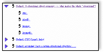 Blue Wedges open and close levels of an outline structure TwistDown arrows open and close the contents of the individual Entries. See the Top Level view of the DynaSites Forum