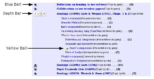 Open topics have a depth bar beside them. Clicking a number opens the topic to that level.