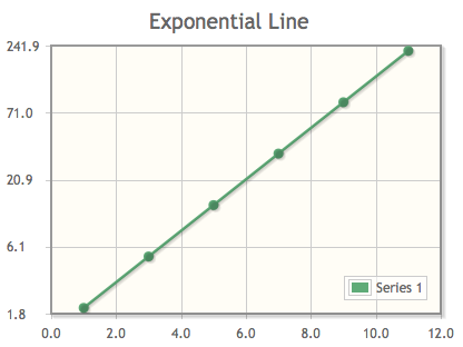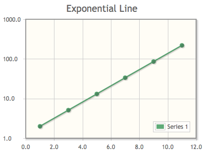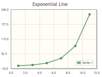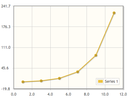 $.jqplot('chartdiv', [[[1, 2],[3,5.12],[5,13.1],[7,33.6],[9,85.9],[11,219.9]]]);Which will produce a chart like: